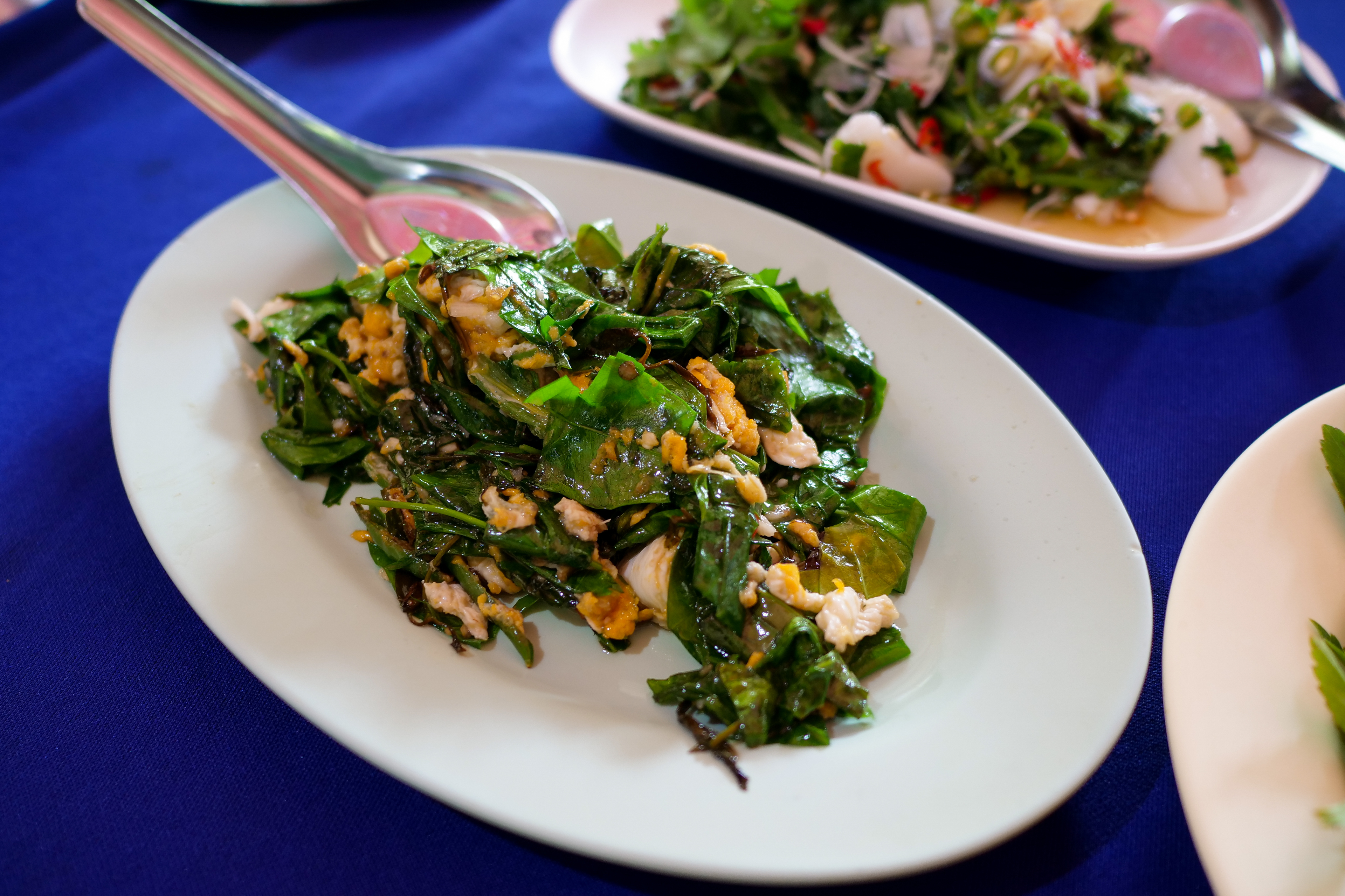 An excellent vegetable dish to order is their fern salad (yam pak kud ยำผักผักกูด).