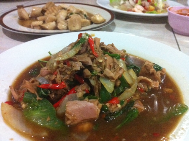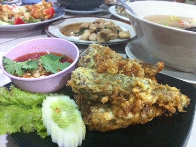 This was one of the places I enjoyed most (and not because it plays host to some awful late night karaoke). The restaurant has a great view of the rolling hills in the surrounding Wang Nam Kiew (วังน้ำเขียว) area and successfully delivered a few dishes I rarely see on menus or really enjoy when I have them. They included spicy basil tuna (aka tuna krapow) and deep fried stuffed peppers (stuffed with minced pork) which I loved.
