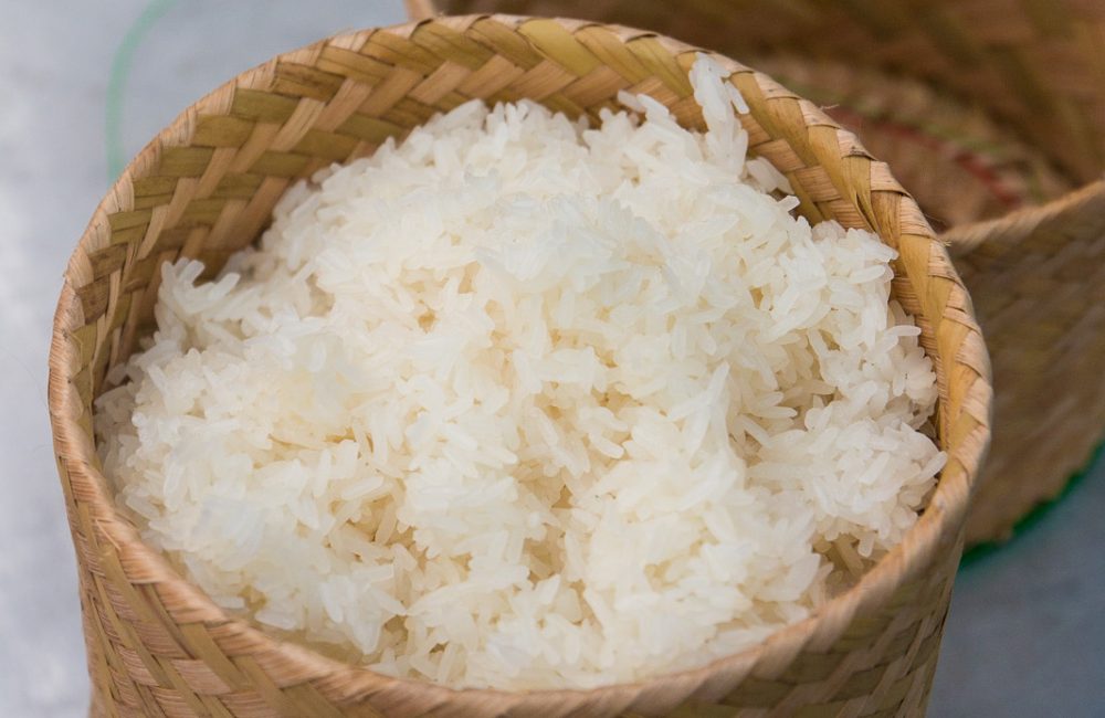 In Thailand, som tam is eaten with Thai sticky rice. You can grab a small ball of sticky rice in your fingers, dip it into the green papaya salad dressing, and then pop it in your mouth.