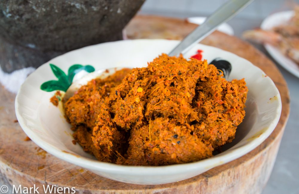 Warning: You may want to wear gloves when pounding chilies by hand. If you touch them for too long, they will burn, and can burn on your hands for hours.