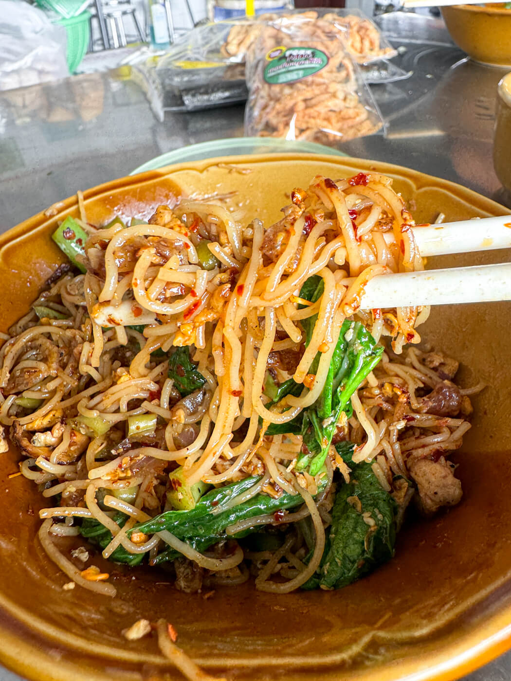 If you’re looking for delicious local noodles when you’re in Phuket, you’ve got to check out Mee Ao Gea (หมี่อ่าวเก).