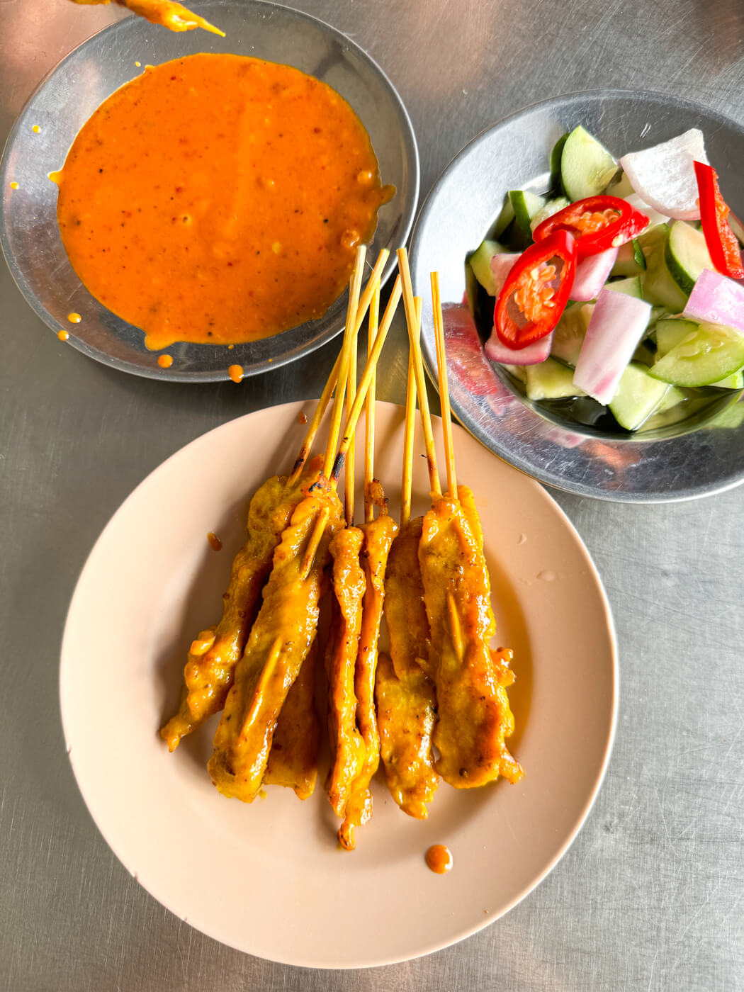 If you look around, you’ll also notice many people order their famous pork satay.