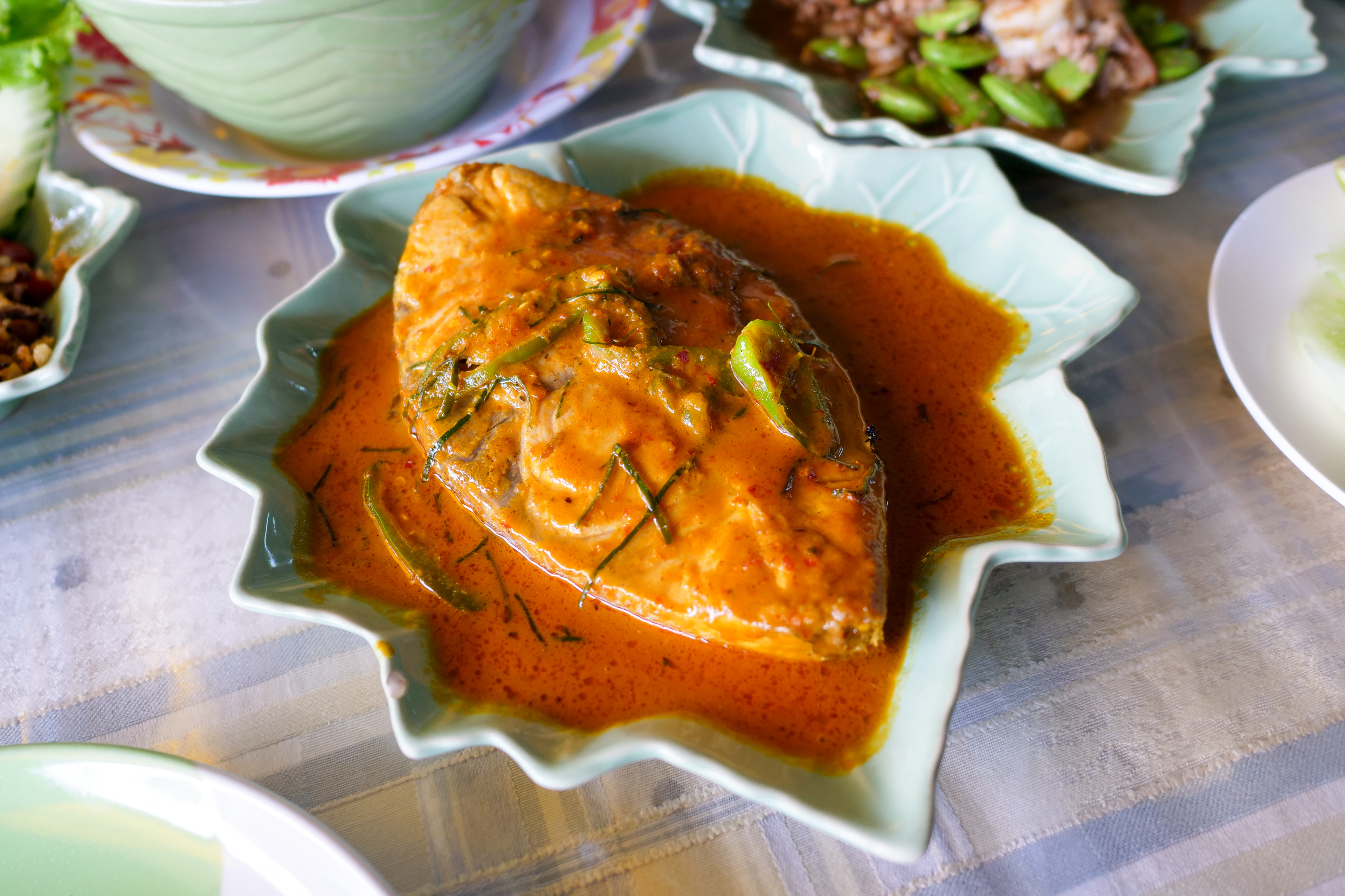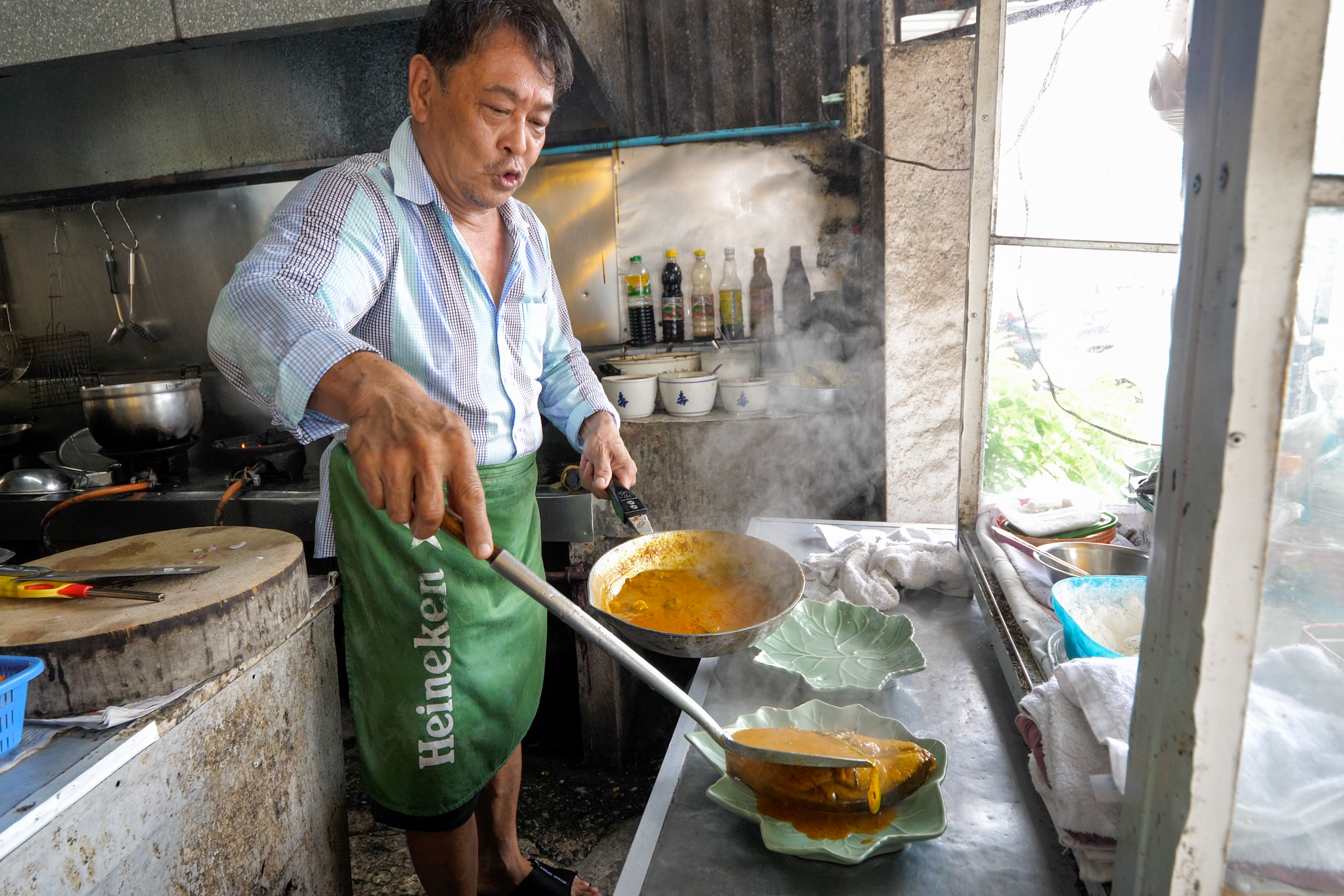 But unfortunately, the day we went for lunch, he didn’t have crab (Chef Dang mentioned he normally has it at dinner). But he did recommend some fresh fish that he had for the day, “pla mong hui siem (ปลามงหัวเซี้ยม, I think in English it’s a Long Nosed Emperor fish, not fully sure),” that he said was very delicious in a coconut milk curry. So that’s what we ordered.